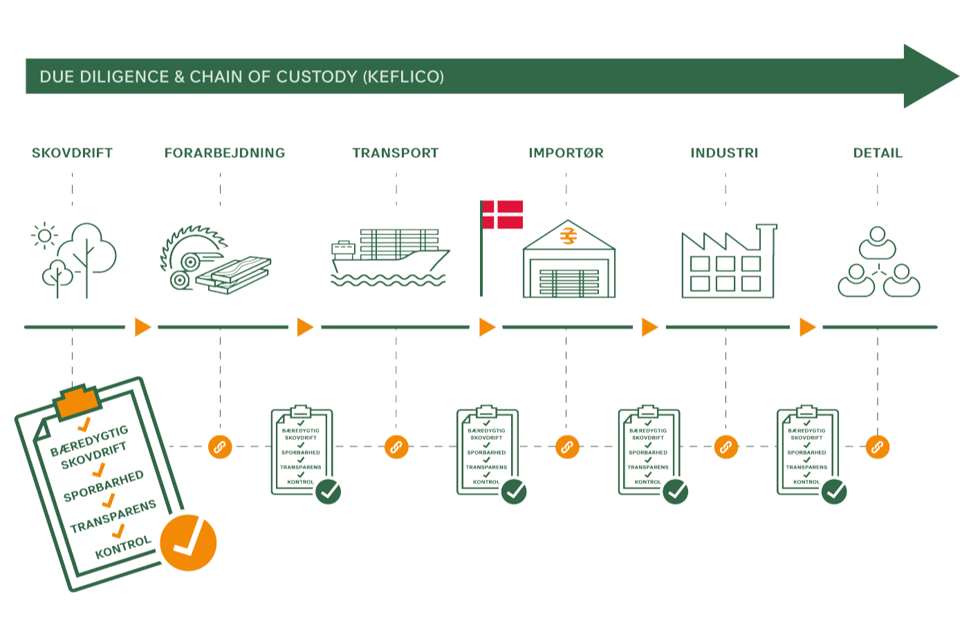 Derfor anbefaler vi, at man kun køber træ fra ansvarlige importører, som har dette på plads. Med vores tætte og langvarige kontakt med vores samarbejdspartnere har Keflico netop styr på hvert led i leverandørkæden.